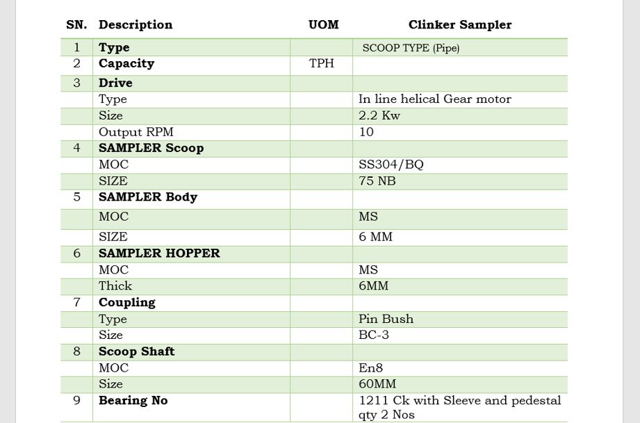 TECHNICAL DATA SHEET (CLINKER SAMPLER)