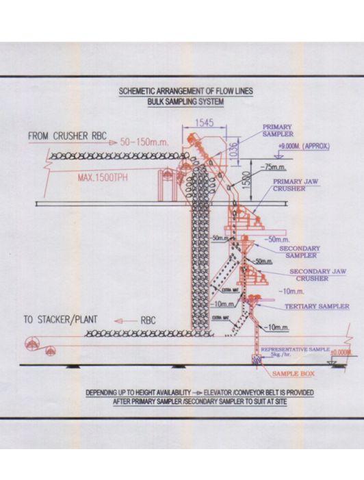Now it is being controlled by installation of CROSS BELT ANALYSER on feeding belt of raw material stockpile, which gives continuous feed back about the quality of limestone stockpile being formed. Since this is very costly equipment, costing around Rs. 2.35 crores and the regular replacement cost is also around Rs. 7.00 to 10.00 lacs per annum, as an alternative we have developed BULK SAMPLING SYSTEM, which takes the sample of limestone being fed to stockpile at an interval of 0-10 minutes and in a hour 12 to 20 samples are being collected and they are further sub-divided, crushed and found in powder formation. The final sample weighing around 2 to 5 kgs. Which gives the complete representative sample of material being fed to stockpile during last one hour.